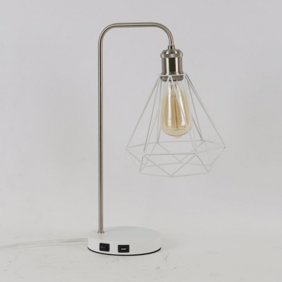 Retro Iron Art Minimalist Table Lamp AA Battery Hollow Diamond Shape Reading Lamp Vintage Night Lamp For Bedroom Bedside Lighting